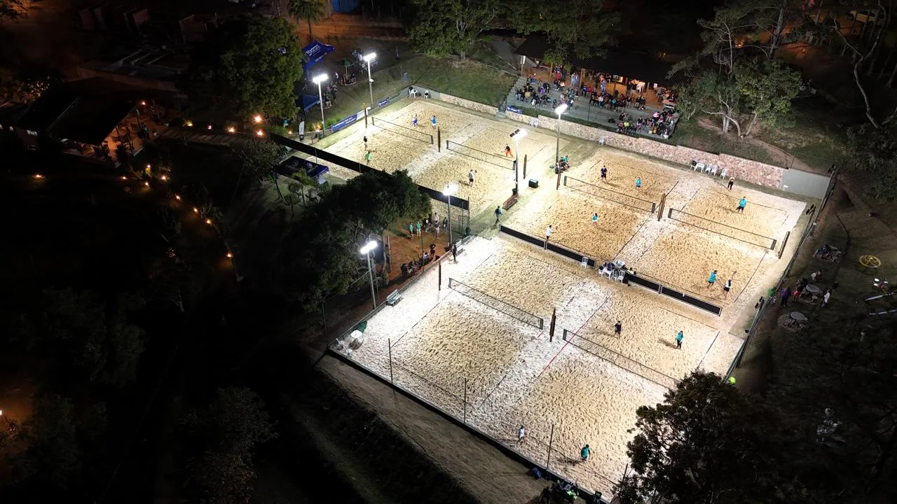 6 quadras de areia projetadas para atenderem às normas internacionais de competição e treinamento. As redes atendem aos padrões de cada modalidade com iluminação profissional.